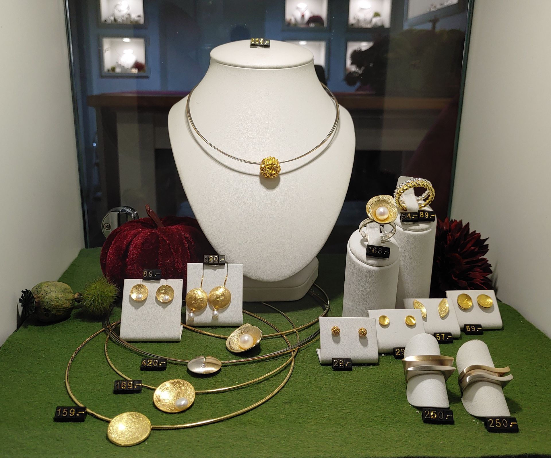 Unser Sortiment ergänzen wir mit regelmäßig wechselden trendorientierten Schmuckkollektionen aus Silber oder Gold, die jedem Budget gerecht werden.